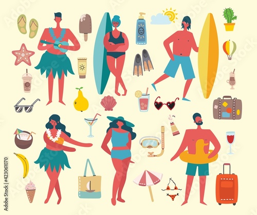 Isolated set of diverse people characters picking mushrooms. Old senior couple, young man and woman alone, happy family of parent and boy child enjoying harvesting in forest vector illustration
