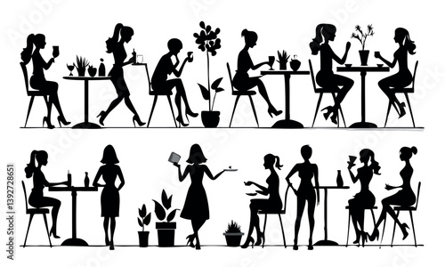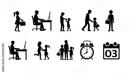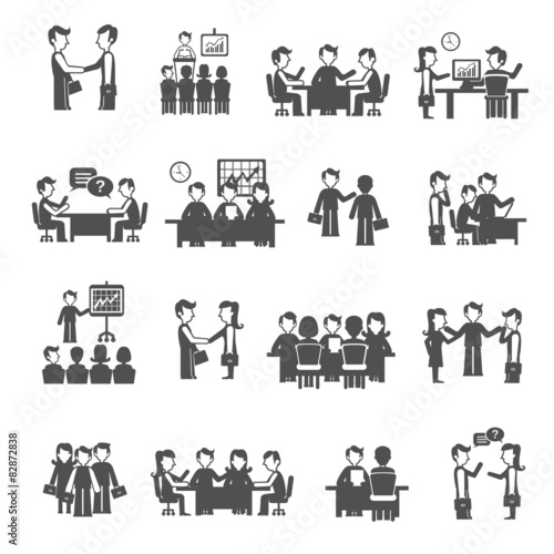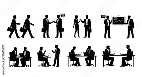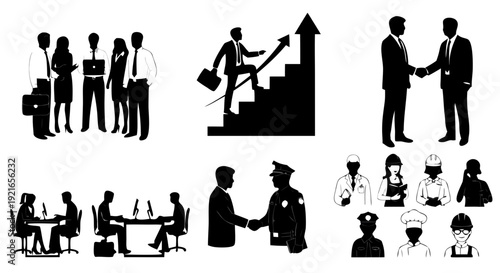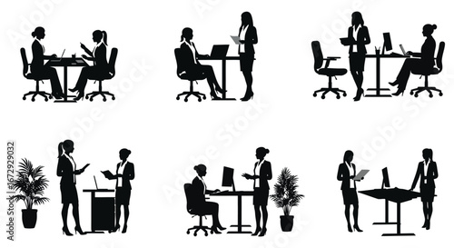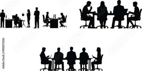 Isolated set of office people silhouette doing their job on white background. Vector illustration of man and woman employee characters