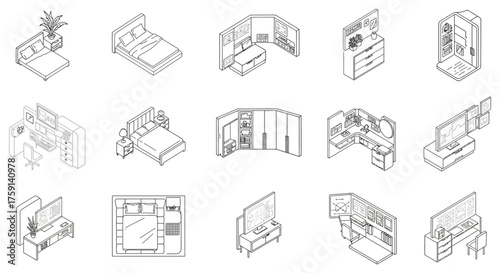 Isometric bathroom interior constructor. Vector set of isometric Furniture elements of home interior isolated on white background. Flat 3d design template.