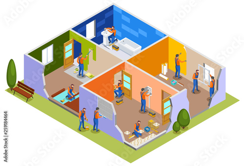 Bus stop. Disabled man in wheelchair leaving city bus using wheelchair access ramp, flat vector isometric illustration. Disabled person lifestyle. City public transport accessibility.