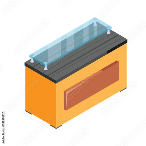 Isometric city building modern shop or office exterior 3d vector. Smart house facade icon illustration for urban map architecture. Commercial real estate isolated on white background
