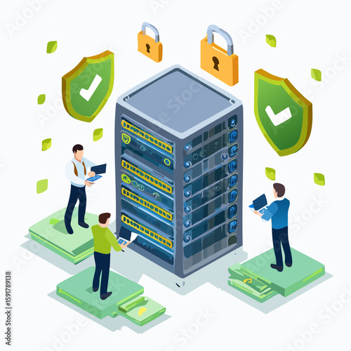 Isometric doctor, patient with broken arm and leg, health insurance policy with shield, flat vector illustration. Medical insurance concept.