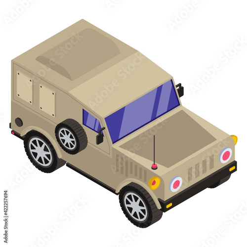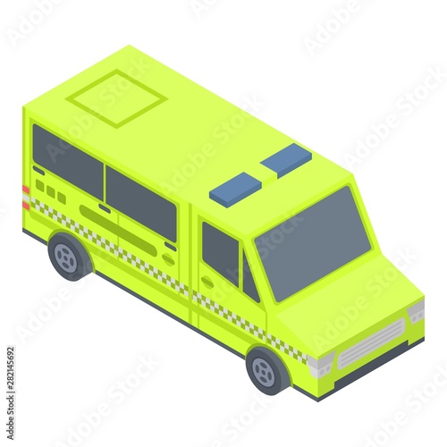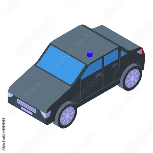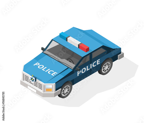 Isometric police car with siren vector icon. Patrol vehicle emergency city transport 3d illustration isolated on white background