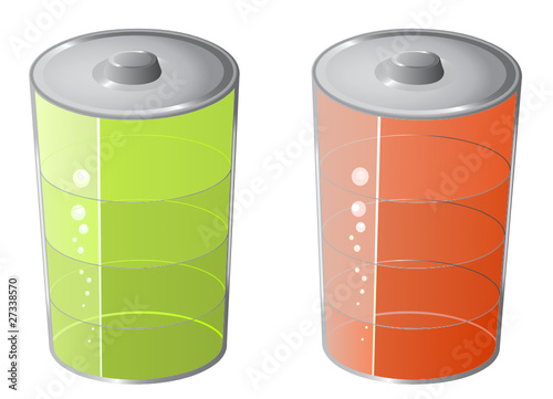 Isometric power battery isolated vector icon. AA or AAA cylinder rechargeable alkaline accumulator 3d illustration on white background. Electricity equipment for charge point