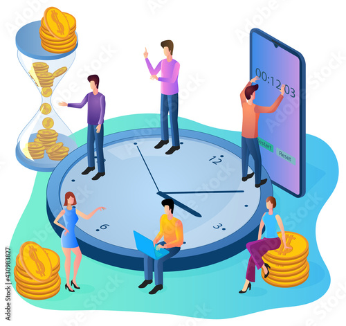Isometric smartphone, 5g rocket startup. People talking on mobile phones, watching video on laptop computer, jogging with smart watch, vector illustration. 5g network wireless systems.