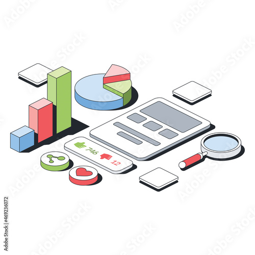 Isometric smartphone with residential house building and its blueprint on screen, flat vector illustration. Floor plan and home project online service. House design mobile app.