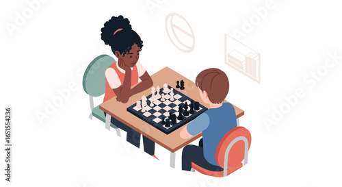 Isometric young man and woman playing checkers on smartphone screen, flat vector illustration. Play mobile checkers board game online with friends.