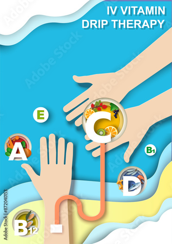 Iv vitamin drip infusion medical therapy vector illustration. Nutrition serum intravenous injection for people healing