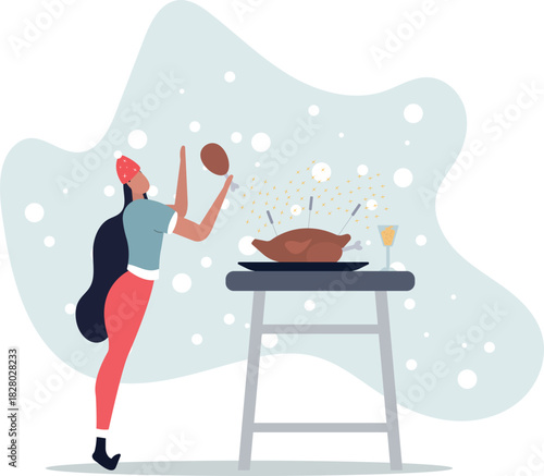 Japanese food vector illustration. Tiny characters pouring soy sauce on huge nigiri sushi with salmon on top, holding chopsticks, bowl of wasabi paste. Traditional asian cuisine, sushi bar, restaurant