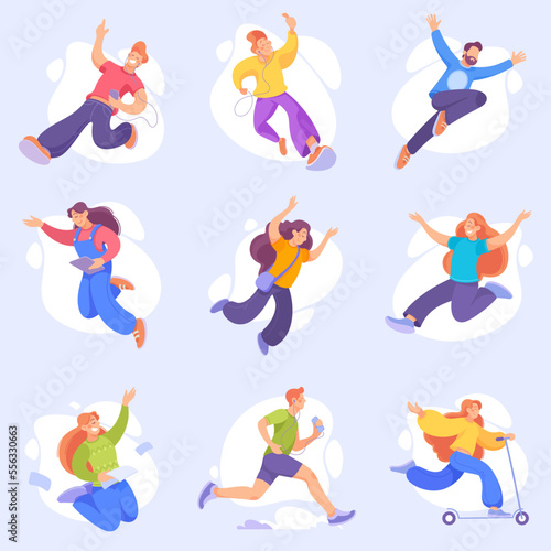 Jazz band cartoon characters. Vector illustration isolated on white background. Musicians playing guitar, drums, trombone, trumpet, saxophone, violin, double bass. Singer singing with microphone.