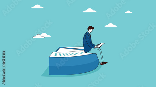 Vector illustration of man riding water scooter. Jet ski flat style design element.