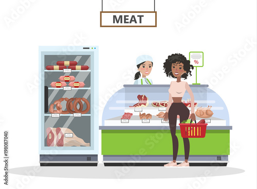 Vector illustration of young man looking at jewelry shop display case. Jewelry store concept flat style design element