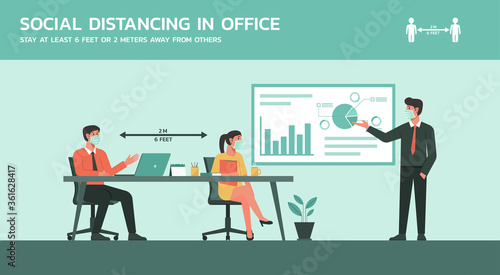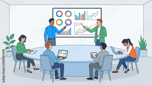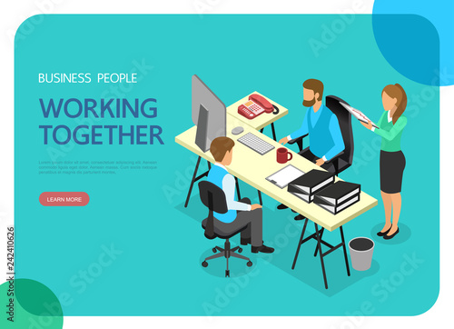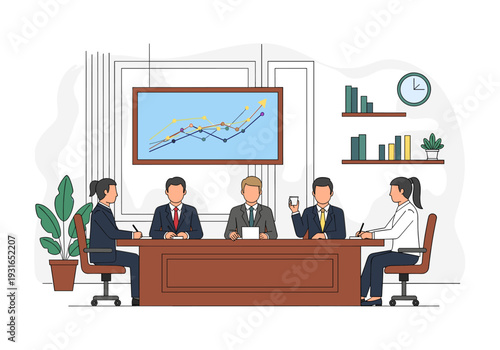 Job interview concept vector illustration in flat style. Manager, director holding interview with young woman candidate.