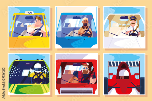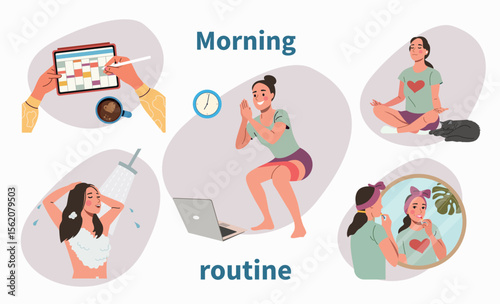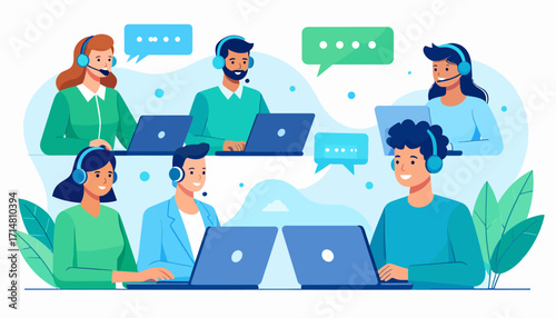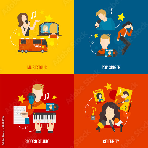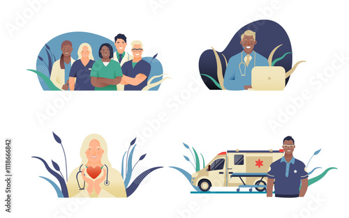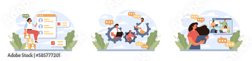 Journalist broadcast tv media news flat vector scene set. Reporter with microphone and camera at work illustration. Professional photographer, interviewer and cameraman