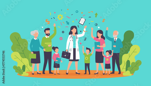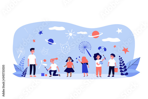 Just married couple concept vector illustration. Design elements and icons in flat style.