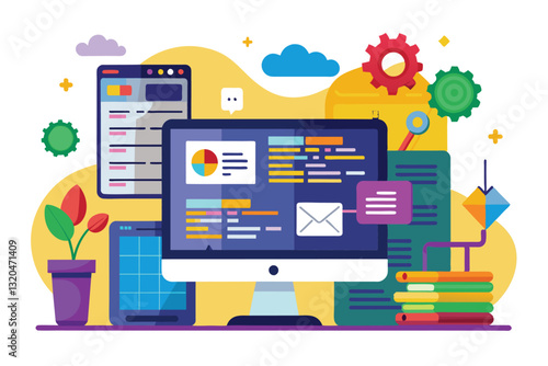 Kanban vector flat illustration. Kanban cards on whiteboard, rocket, clipboard with checklist. Agile methodology for startup business, visual process management concepts for web banner, website page.