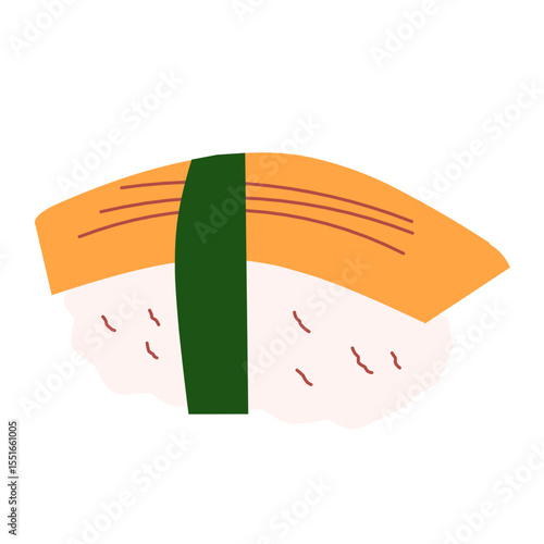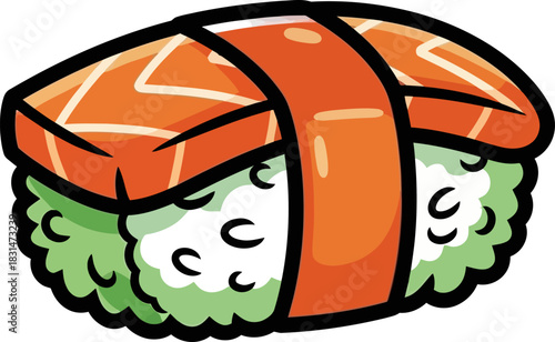 Kawaii japanese sushi with salmon fish slice vector. Asian food funny character isolated on white background