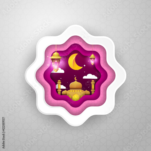 Kid is looking the stars with telescope. Universe discovery vector concept in paper art style. Origami paper cut design