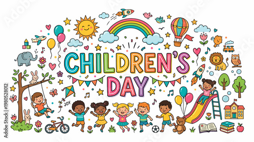 Kids game zone colorful inscription for playroom decoration. Poster, logo, banner style for child entertainment advertisement. Fun party emblem for school or kindergarten classroom