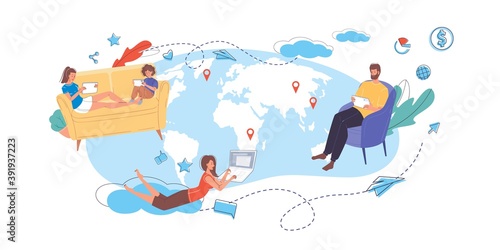 Happy cheerful kids having fun enjoying pillow fight game jumping on home sofa couch vector illustration isolated on white background