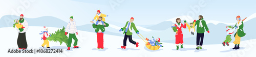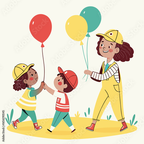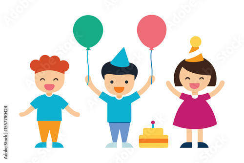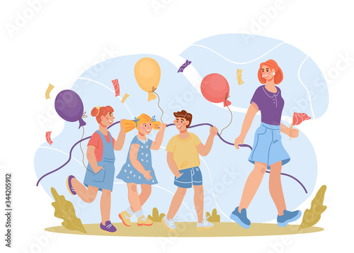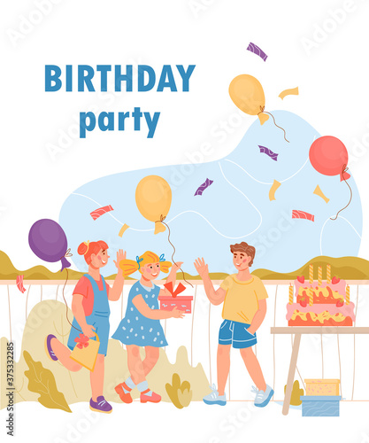 Kids party isolated scene set. Happy children having fun amusement entertainment enjoying joyful pastime vector illustration. Birthday, festival event or performance