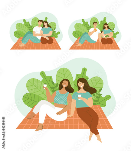 Kids playing hide and seek vector set. Children spying, observing, hiding and sneaking behind shrubs, bushes, trees, stones and fence, in cardboard box illustration isolated on white background