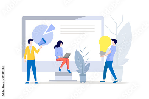 Kids studying languages with teacher, flat vector illustration. English languauge class, course. Kids school education.