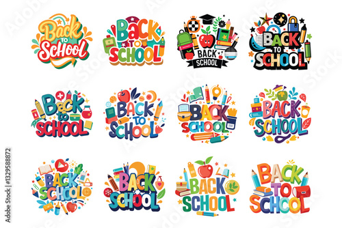 Kids zone entertainment banner set, vector illustration isolated on white background. Children playground, game room or center logo.