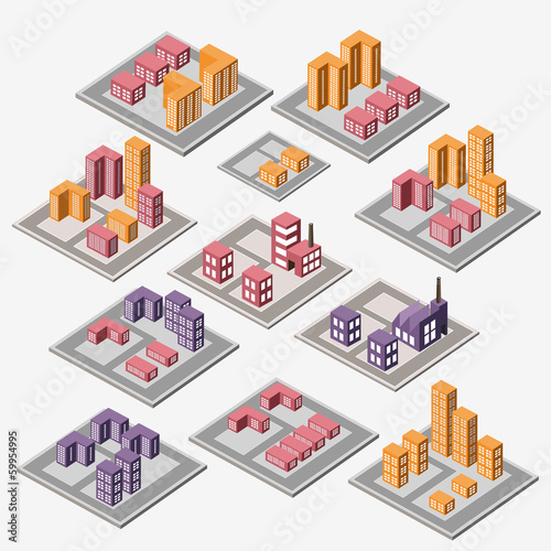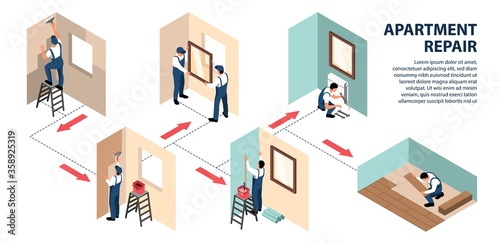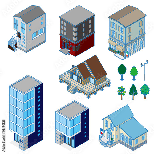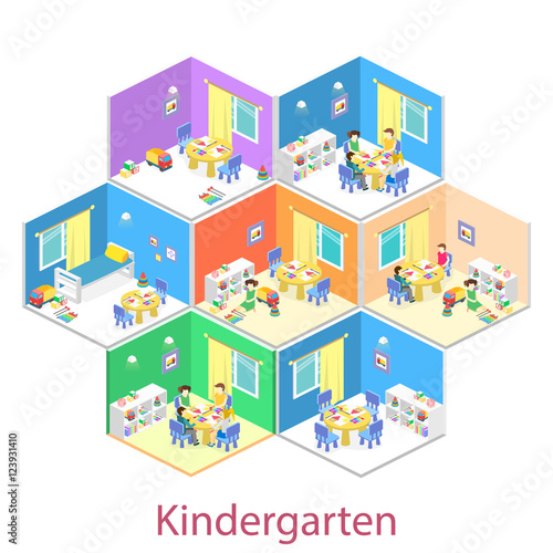 Kitchen interior constructor, vector flat isolated illustration. Isometric cutaway rooms empty and with furniture, window, door, home appliances. Kitchen creator.