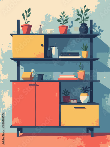 Kitchen interior in restaurant. Vector poster. Chefs cooking food in kitchen room.