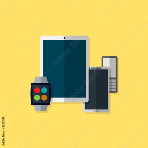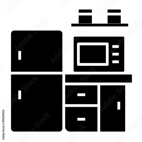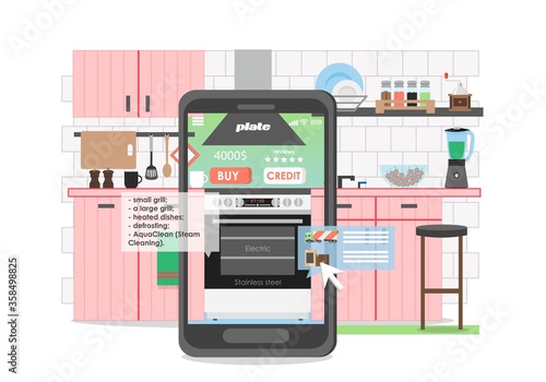 Kitchen electric home appliance vector. Household equipment illustration. 3d fridge, microwave cooker and stove with hood. House supplies for storage and cooking food