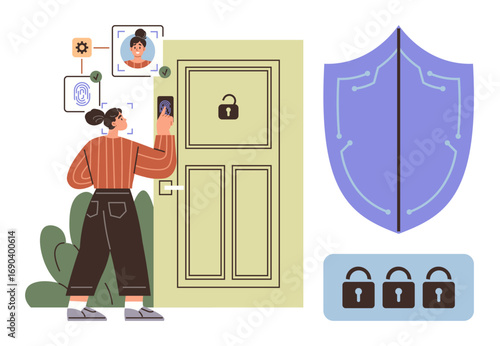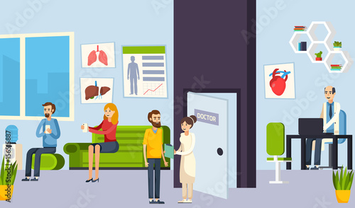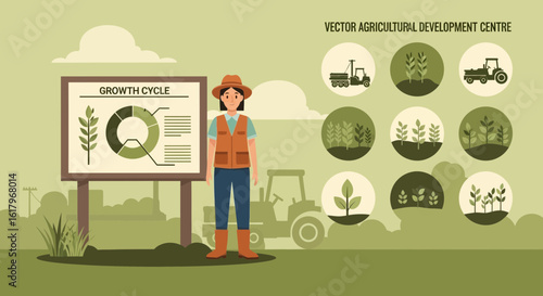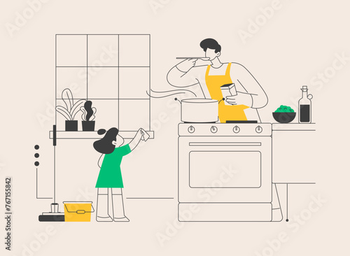 Vector illustration of woman standing in front of opened fridge with food. Kitchen in the house flat style design element.
