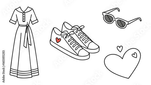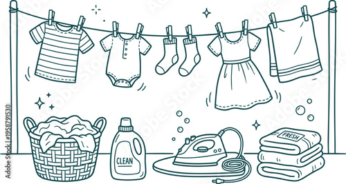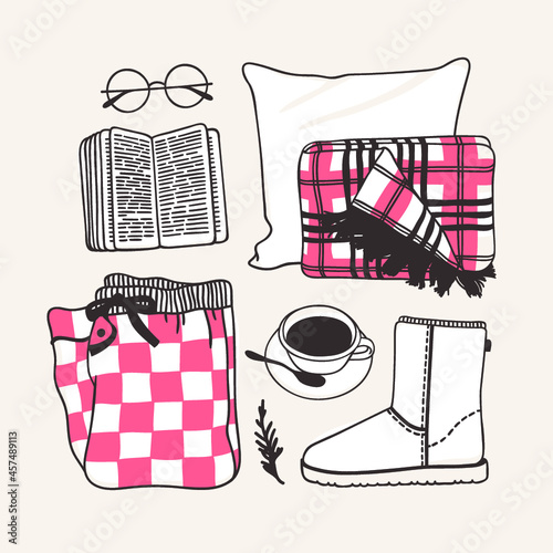 Knitting and crochet set, vector ink hand drawn illustration isolated on white background.