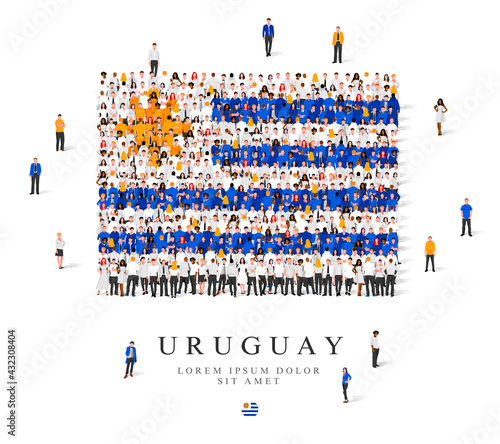 Large group of people forming pie chart standing together, flat vector illustration. People crowd gathering. Statistics, population demographics.