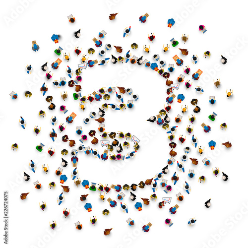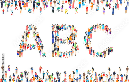 Large group of people forming US dollar sign standing together, flat vector illustration. People crowd gathering. Business, finance, banking symbol.