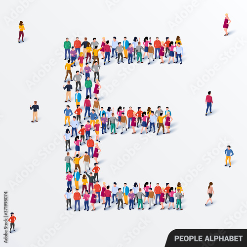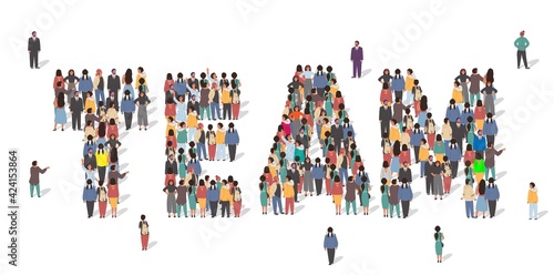 Large group of people standing together forming Team word, flat vector illustration. People crowd gathering. Team work typography banner. Business concept.