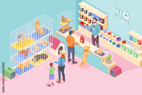 Cutaway laundry reception interior with receptionist and customer characters, flat vector isometric illustration. Laundry service.