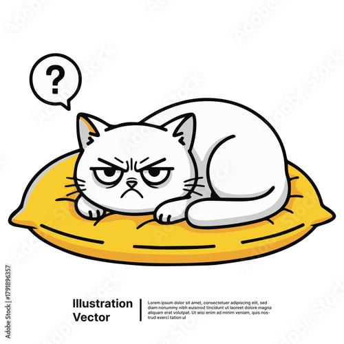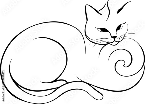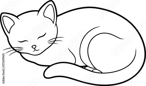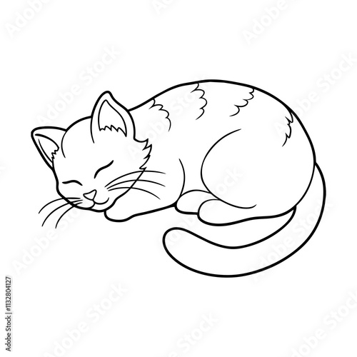 Lazy cat sleeping vector. Kitten napping icon. Cute cartoon pet animal fall asleep, rest isolated on white background