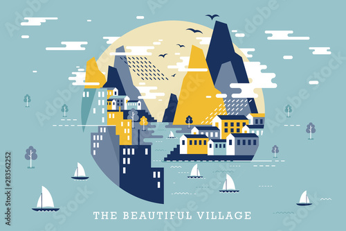 Vector illustration of big cruise ship representing corporation and small ship representing small and medium-sized enterprises. Business structure and leadership concept design element in flat style.