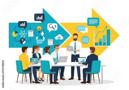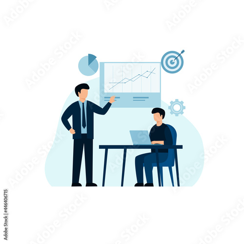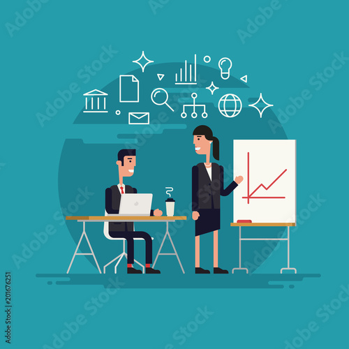 Vector illustration of chemistry teacher, university professor giving lecture. Lecture hall, classroom interior. Flat style design.