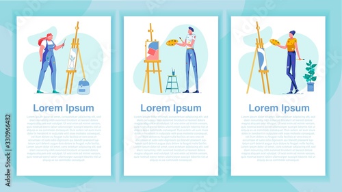 Vector set of mobile app onboarding screens. Cinema, Art gallery and Museum exposition website design templates and web banners. Leisure time and cultural activities concepts.