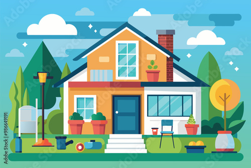 Vector illustration of father playing football with son and father teaching his son to ride bike. Childcare and parenting concept flat style design element.