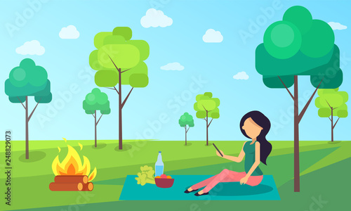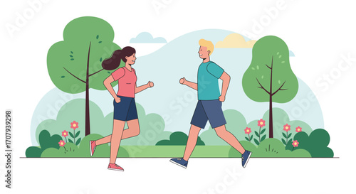 A leisurely walk with family in a park concept vector illustration in flat style. People in a outdoor city park.
