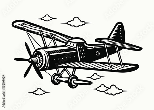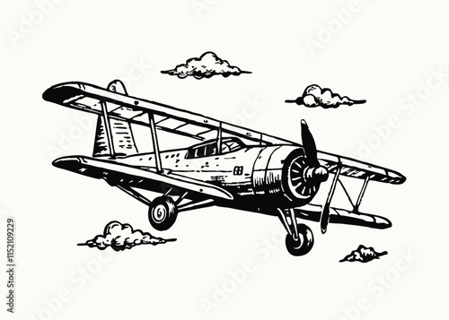 Lets travel concept vector illustration. Retro airplane poster. Old model plane is flying in the sky postcard. Bon Voyage.