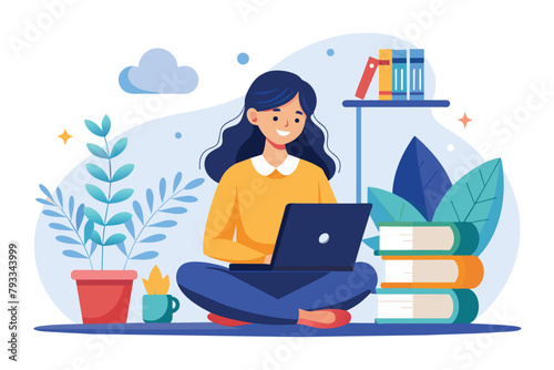 Library landing page design, website banner template set, flat vector illustration. Girl reader, student, bookworm reading book sitting at table with pile of books in library. Knowledge, education.