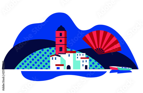 Lighthouse and boats floating on sea. Vector illustration in modern paper art style. Marine greeting card, cover, poster, banner design template.