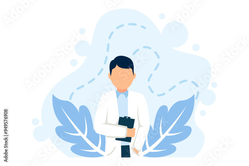 Lip contouring procedure vector. Beautician cosmetologist holding syringe making injection with hyaluronic acid filler to woman patient illustration. Face beauty and cosmetology concept