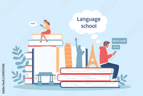 Tiny people female characters poets writing and reading poems, vector flat illustration. Literature and culture, poetry art, online literary magazine concept.