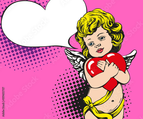 Little girl thinking about something. Vector illustration in comic retro pop art style.