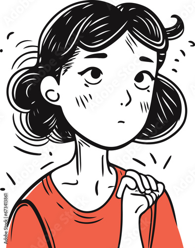 Little girl thinking about something. Vector illustration in comic retro pop art style.